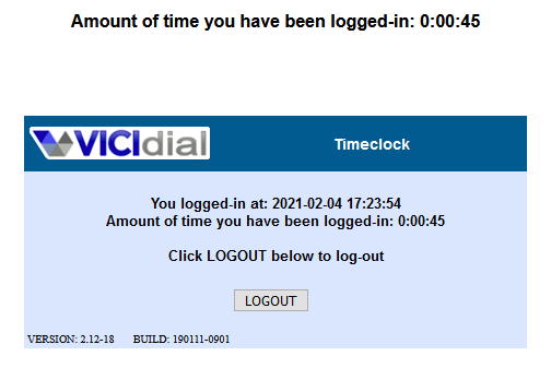 Al ingresar mostrará el siguiente menú, dé click en el botón Vicidial Timeclock, lo redireccionará a la pagina de Vicidial